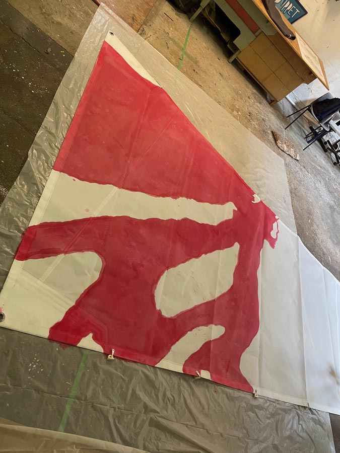 The first day of painting the sails had its challenges. From bleeding ink to projected outlines we could barely see